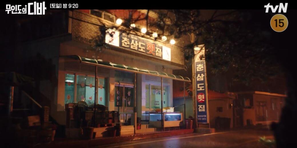 서목하의 집으로 나왔던 춘삼도 횟집은 경남 고성 삼산면 두포리에 위치한 나포리 횟집이었습니다. 아버지의 가정폭력을 견디다 못해 경찰에 신고했지만 아무에게도 도움을 받지 못했던 목하의 어린 시절이 담긴 장소로 나왔습니다.