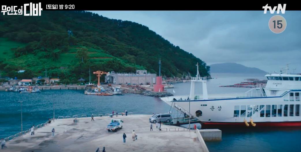 아버지의 폭행을 피해 꿈을 이루기위해 목하와 기호는 함께 춘삼도를 떠나 서울로 가기로 합니다. 배를 타러 가기 위해 간 춘삼항 선착장은 통영 욕지도 연화도 선착장이었습니다. 배가 춘삼항 선착장에서 출발하기 전 목하의 아빠가 트럭을 몰고 선착장에 내리는 것을 창문으로 본 기호가 목하를 보내기 위해 온몸으로 목하 아빠의 승선을 막아보지만 막지 못했던 장소입니다.